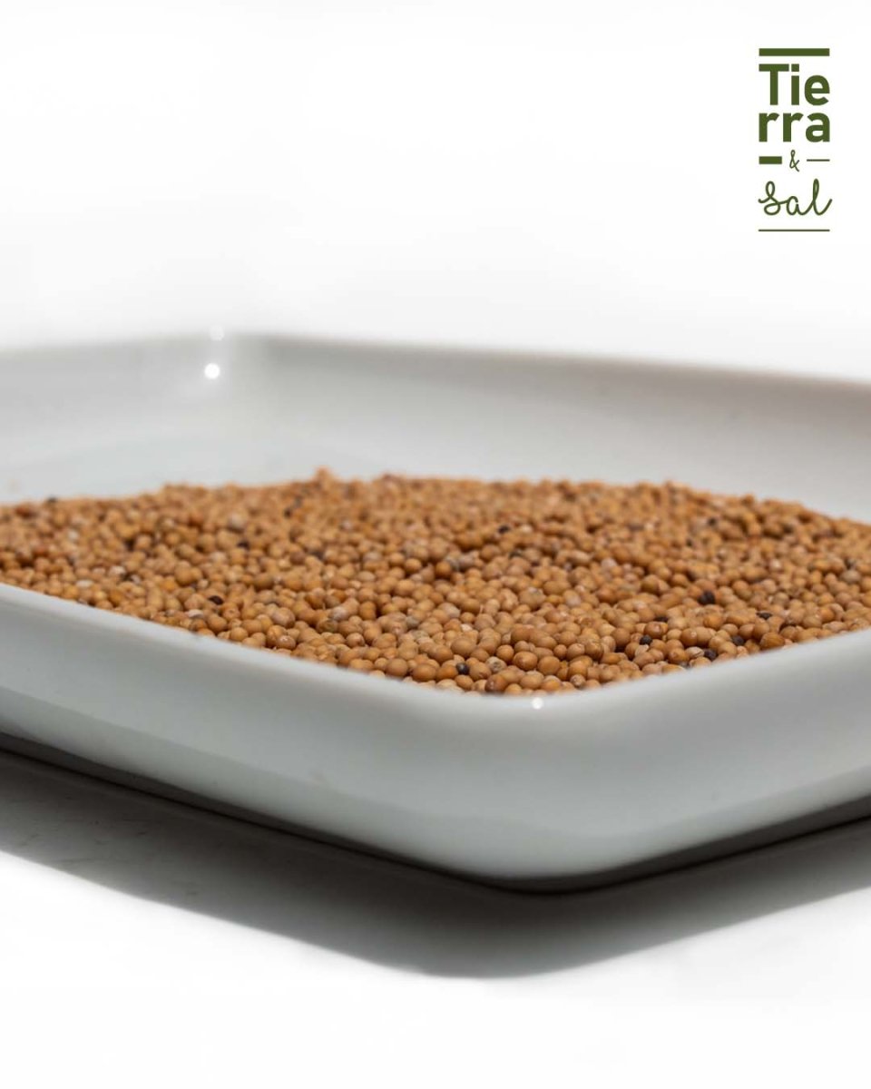 - Semillas de mostaza enteras, seleccionadas cuidadosamente.